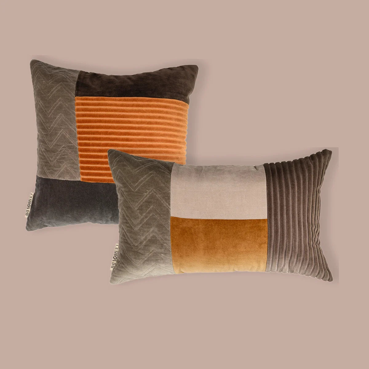Lysning Putetrekk Størrelse (cm): 30×50 Materiale: Bomullsfløyel Type/Detaljer: Brodert og patchwork-mønster Farge / Nyanse: Gull / rust / grå Inspirasjon: Bærekraftig bruk av stoff Sertifisering: OEKO-TEX® Anbefalte rom: Soverom, Stue, Lobby, Gjesterom, Lesekrok, Uteplass, Spisestue