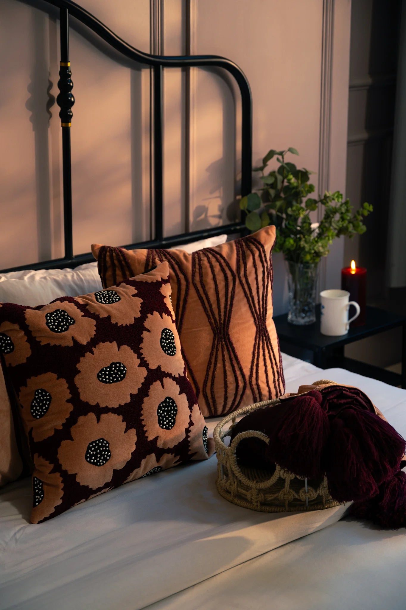 Laget av ekte OEKO-TEX®-sertifisert 100% bomulsfløyel og produsert under SEDEX-godkjente, miljøvennlige prosesser, er denne pynteputen like trygg og god mot huden som som den ser ut. Enten plassert i sofaen eller brukt til å fremheve en lesekrok, blander den tidløst håndverk med sofistikert skjønnhet. Kveldsbris er laget for koselige kvelder med levende lys og Netflix-serier.