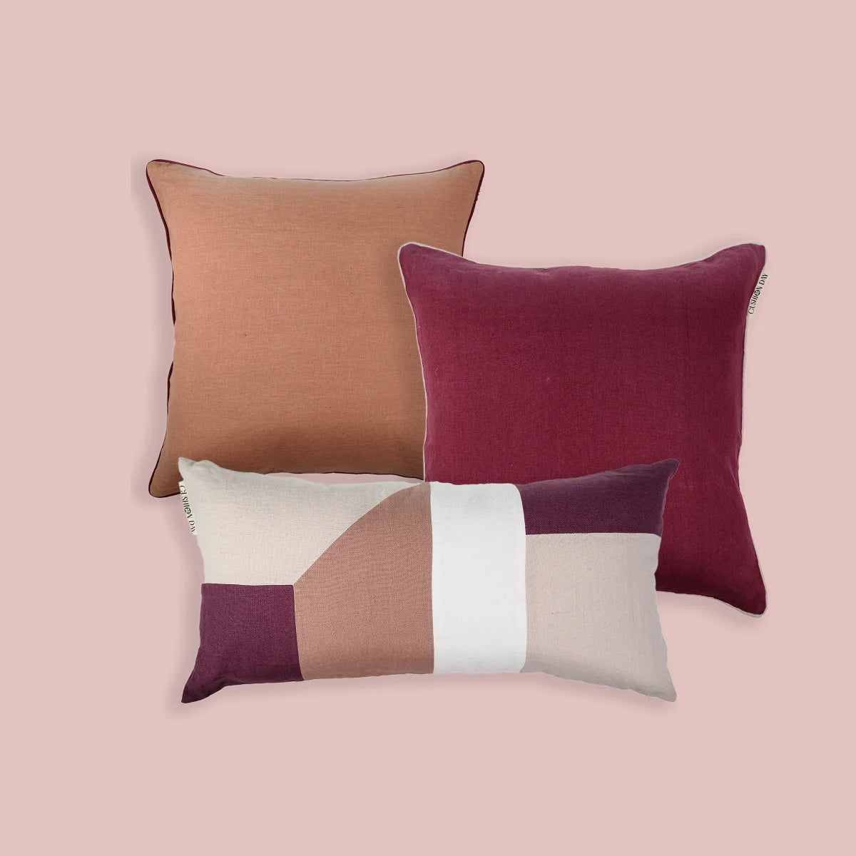 Fjellvin, Roslin & Vinlin Putesett samler design, tekstur og tone i en gjennomtenkt nordisk komposisjon. Fjellvin-pynteputen fra Conscious Cushion-serien skiller seg ut med sitt geometriske lappeteppe-design, laget av overskuddslin og bomull – en moderne tolkning av tradisjonelt håndverk. Roslin-pynteputen tilfører en rolig mokkafarget base som balanserer helheten, mens Vinlin-pynteputen introduserer en dyp vinrød tone som gir et festlig, men sofistikert preg.