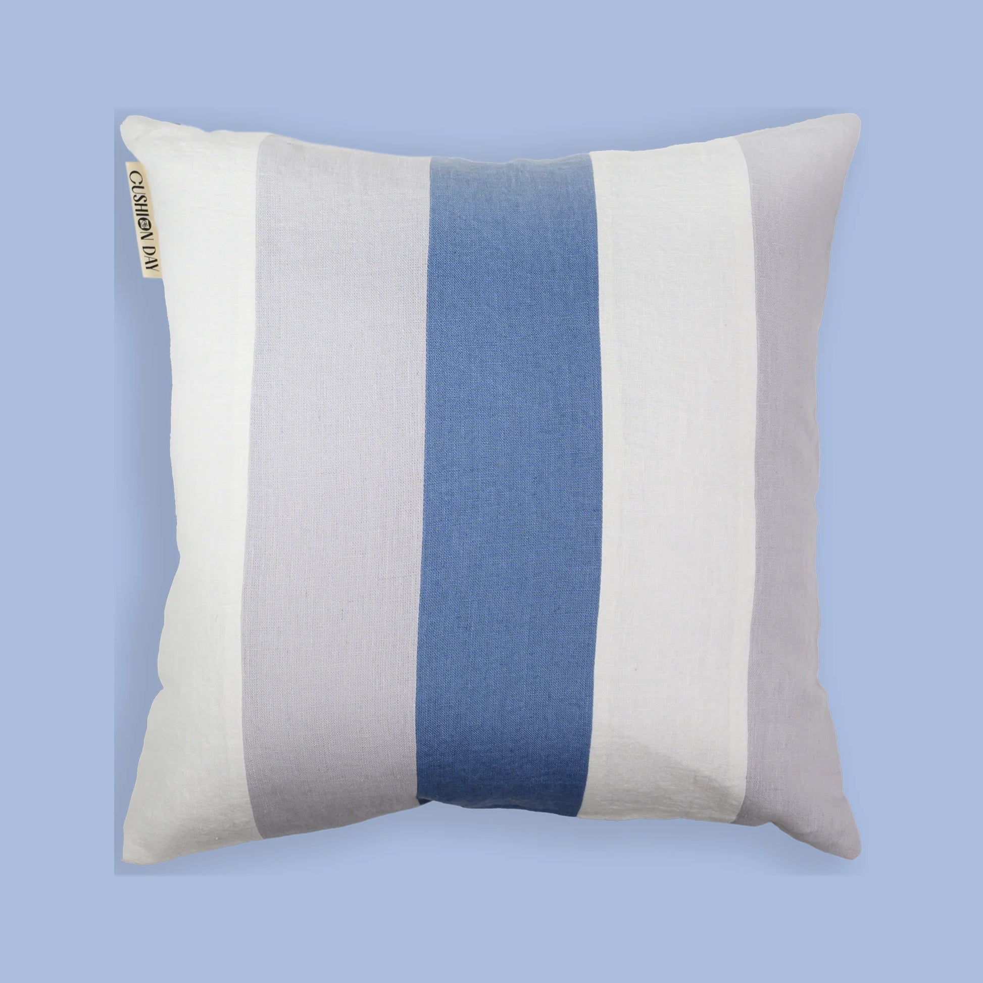 Pynteputene Sky fra Conscious Cushion-serien tilfører en oppfriskende balanse av ro og farge. Med brede linstriper i lavendel, kritt og isblå gir disse linputene en følelse av letthet og tekstur til ethvert nordisk-inspirert hjem.